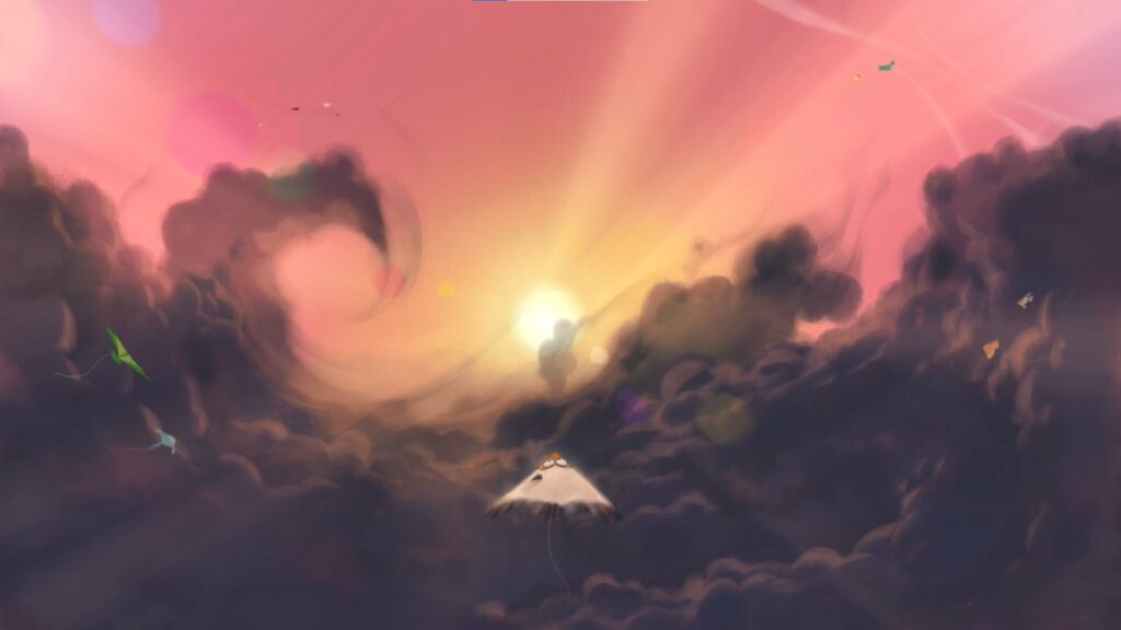 Un aquilone non vola troppo in alto per non essere danneggiato dai venti forti. È solo e ha una vita monotona. Una tempesta gli spezza il filo e lo porta in cielo. Lì l’aquilone capisce che, anche se può farsi male, la vita da aquilone ne vale la pena.